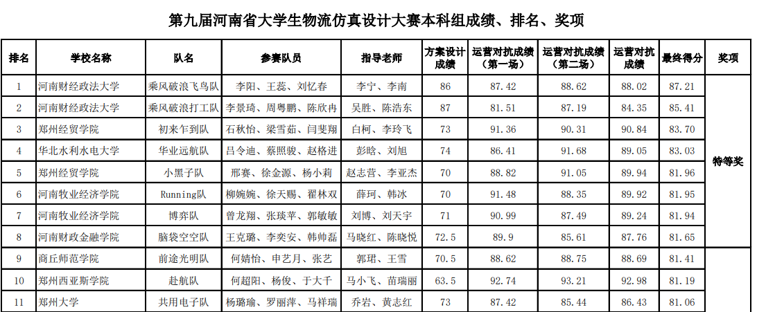 近日,由河南省物流協(xié)會(huì)主辦的第九屆河南省大學(xué)生物流仿真設(shè)計(jì)大賽暨“百蝶杯”第八屆全國(guó)大學(xué)生物流仿真設(shè)計(jì)大賽河南省選拔賽圓滿結(jié)束。9001cc金沙本科組、高職高專組雙雙獲獎(jiǎng)。其中,高職高專組獲得特等獎(jiǎng)并入圍國(guó)賽、本科組獲得一等獎(jiǎng),取得近年參加此項(xiàng)賽事以來(lái)我校最佳成績(jī)。