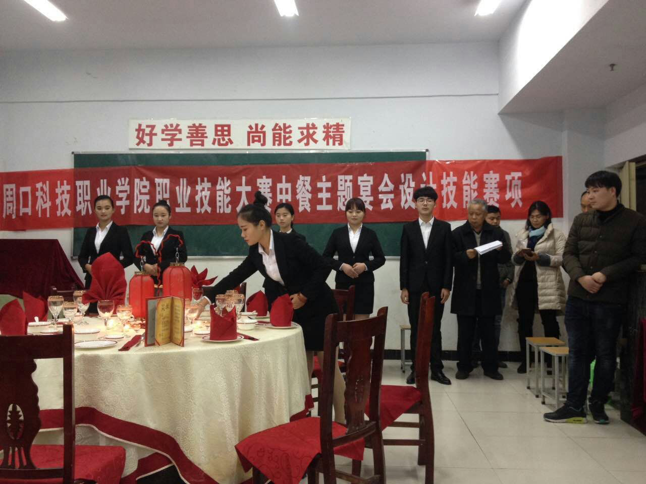 為了充分展示學(xué)生的才華和技能,豐富學(xué)生的業(yè)余文化生活,我系旅游管理專業(yè)于2016年12月16日在酒店實訓(xùn)大廳舉行了技能大賽。在系領(lǐng)導(dǎo)的關(guān)心與支持下,在輔導(dǎo)員老師積極組織協(xié)調(diào)下,在我們學(xué)生的共同努力、相互協(xié)作、各部門各司其職下,此次技能大賽取得了圓滿成功。