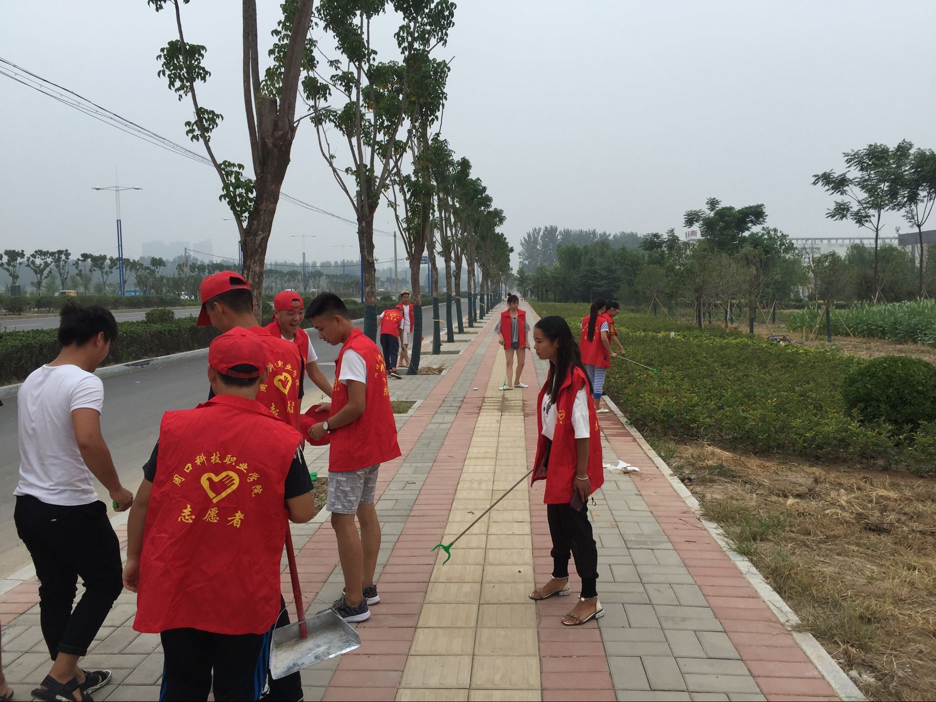 為積極響應(yīng)周口市政府倡導(dǎo)的關(guān)于集中整治環(huán)境衛(wèi)生,創(chuàng)建周口城市文明建設(shè)的活動,周口科技職業(yè)學(xué)院在文昌大道大成路騰飛路段設(shè)立了衛(wèi)生監(jiān)督崗,針對行人隨意垃圾堆放、丟棄垃圾的情況給于監(jiān)督和治理,7月09-8月20日以來,我院團委發(fā)起了維護道路整潔,展周科風(fēng)采為主題的長達兩個月的志愿者活動。我系在校學(xué)生李書、郭耀輝等同學(xué)參加了大約19人參加,組對該路段衛(wèi)生進行集中清理,無論是炎炎酷暑還是大雨滂沱,都不能阻擋他們愛國愛家愛周口的熱情。