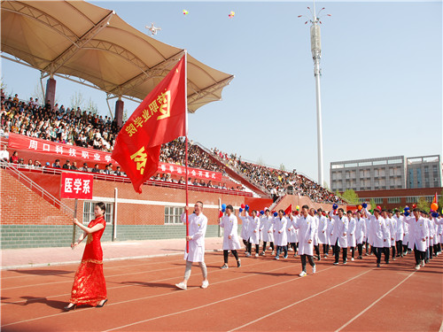 頓時(shí),音樂響起,各參賽代表隊(duì)進(jìn)行了入場儀式。首先,國旗護(hù)衛(wèi)隊(duì)手擎五星紅旗、抬著學(xué)院?;者~著矯健的步伐通過主席臺。接著,鮮花隊(duì)等各系代表方陣以及裁判員方陣入場。隊(duì)員們神采飛揚(yáng),英姿颯爽,他們敲響時(shí)代的強(qiáng)音,展示出當(dāng)代大學(xué)生的風(fēng)采,體現(xiàn)了周科師生團(tuán)結(jié)進(jìn)取、頑強(qiáng)拼搏的精神風(fēng)貌。