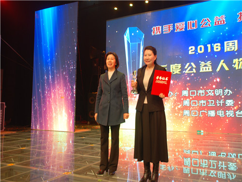 2月9日上午,由周口市文明辦、市紅十字會(huì)、市衛(wèi)計(jì)委、周口廣播電視臺(tái)共同舉辦的2016年度公益人物頒獎(jiǎng)儀式舉行。我院理事長李海燕當(dāng)選為周口市愛心公益大使,我院獲我院獲2016年度愛心聯(lián)盟成員單位。